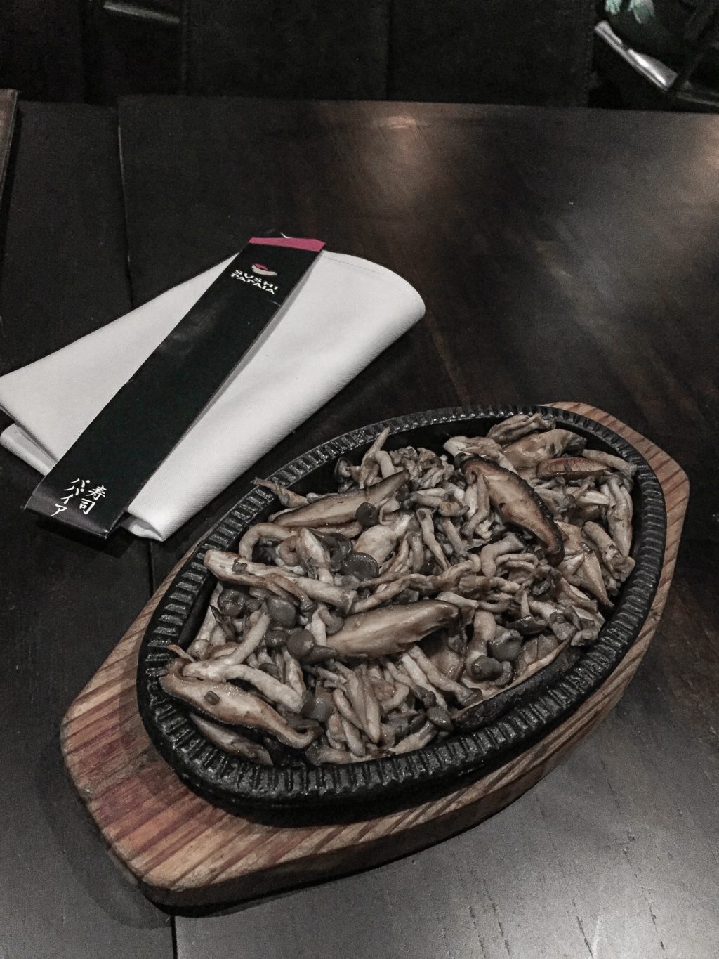 • Shimeji e Shitake na manteiga, servidos na chapa quente. R$ 35,10