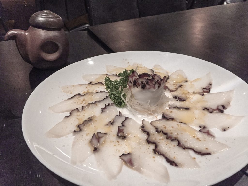 Eu aproveitei mesmo pra explorar o menu com as entradas. Escolhi as duas que menos prometiam me agradar: polvo e kani. E me surpreendi!