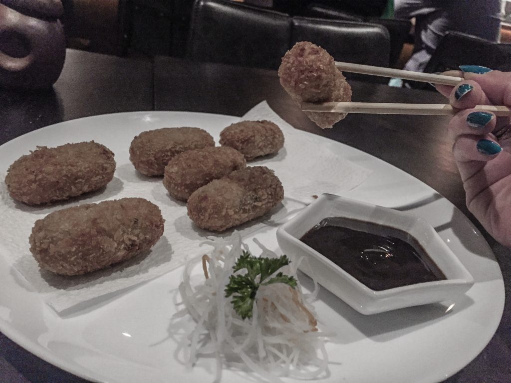 croquete de kani era um item curioso. Pedi sem nenhuma expectativa. E acabou que eu e Tiago ‘brincamos’ de brigar pela última unidade no prato. (Toda piada tem um fundo de verdade e eu realmente queria aquela última! rs).