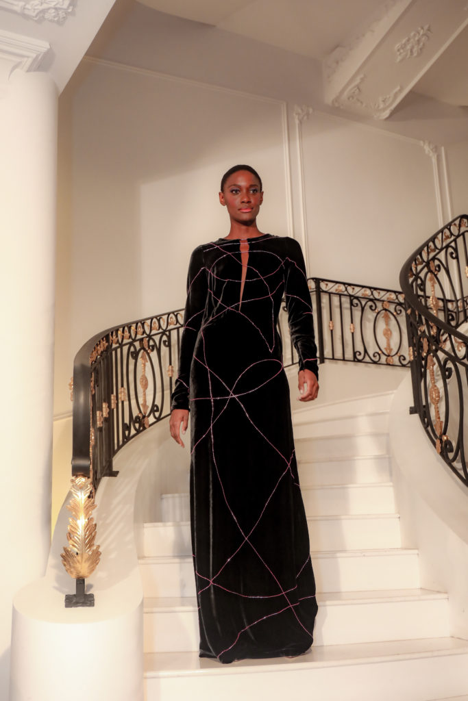 As referências e inspirações são bem representadas pelos desenhos tribais, pelas flores do universo amazônico e a vida simples de uma tribo que carrega a história brasileira e que será apresentada dia 26-03, em sua Maison, para convidados. Os desenhos nos corpos dos índios, são “transportados” para os bordados à mão em tons de branco, dourado e preto.