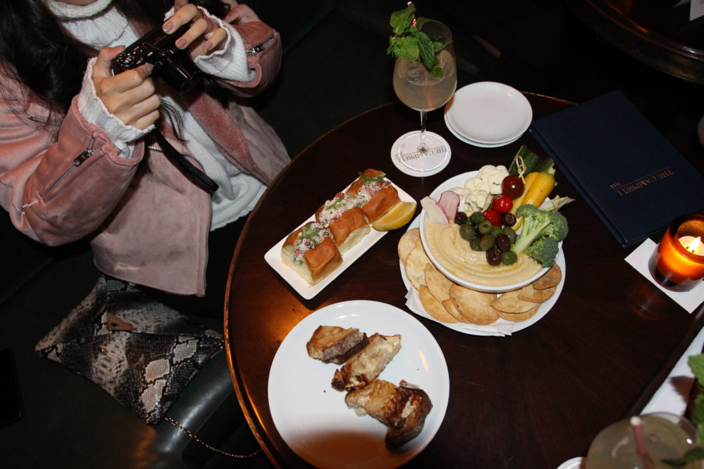 Primeiro jantar da viagem, curando o jetlag e nos recepcionando no nova-iorquino clima de Fashion Week com uma trilha sonora animada em um ambiente clássico e discreto na Grand Central Terminal. The Campbell era inicialmente, em 1923, o escritório de John W. Campbell, economista e membro do New York Central Railroad’s Board of Directors. Ele costumava passar as noites em seu escritório com amigos e colegas, até o transformar num hall musical para conversar e rir, como é hoje. • Drink: Grand Central Spritz $18: grey goose vodka, st Germain + mint, topped with prosecco. A ideia era provar mais, mas o álcool dos drinks deles são intensos rs. • Entrada: Hummus $20: seasonal crudités | Mini lobster rolls $23: toasted bun, lemon fennel aioli + shaved celery • Pra beliscar: Cheese board $25: honeycomb, chutney + sesame rye bread • Sobremesa: Warm House Baked Cookies $8: coconut cherry, valrhona chocolate chip walnut + oatmeal Golden raisin15 Vanderbilt Ave, New York, NY 10017, EUA http://www.thecampbellnyc.com/